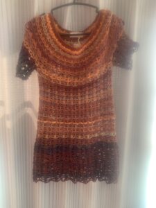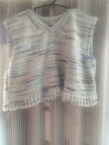 編み物も同時期に始めました。父が倒れて暫くして、義母が亡くなりました。遺品を整理してる時、生地やら毛糸、かぎ針、棒針など洋裁や編み物に関わるものがザクザクと出て来ました。これはもう、やりなさい、と言っているようなものです。私はそう受け止めました。丁度その頃、父が入院して時間を持て余してた母が「編み物がしたい」と言うので、一緒に通い始めました。ここから洋裁と編み物の勉強がスタートします。