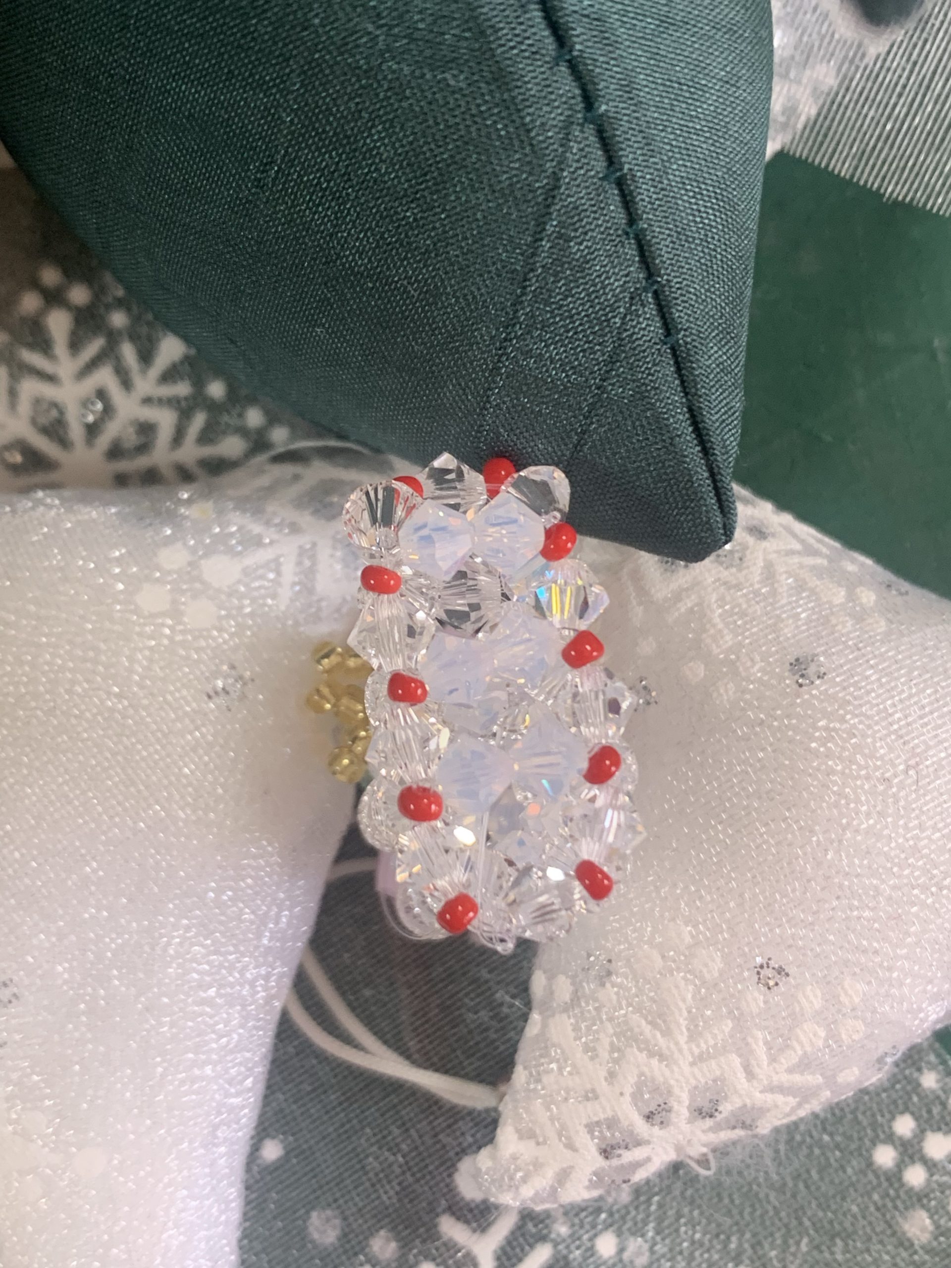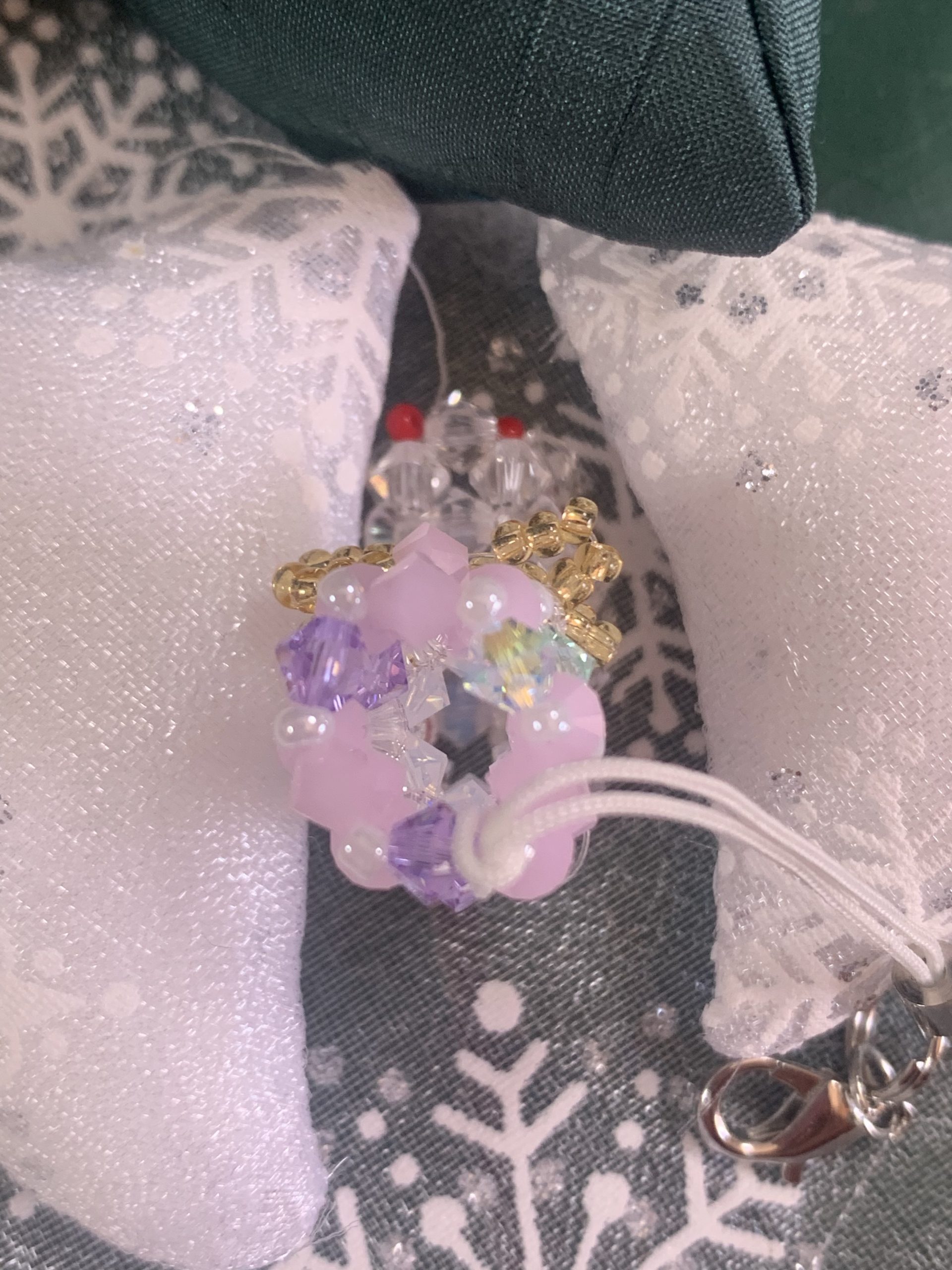クリスマス⭐︎ブーツ 小クリスタル 2021年11月30日 最終更新日時 : 2021年11月30日 奥村三重子4mmのスワロフスキー使用横 約2.5cm 高さ 約3cmうしろブーツの履き口 1周約4cm底 長さ 約2.5cm 幅 約1cmストラップはフック付きです。価格 ¥1,300商品番号 Z20