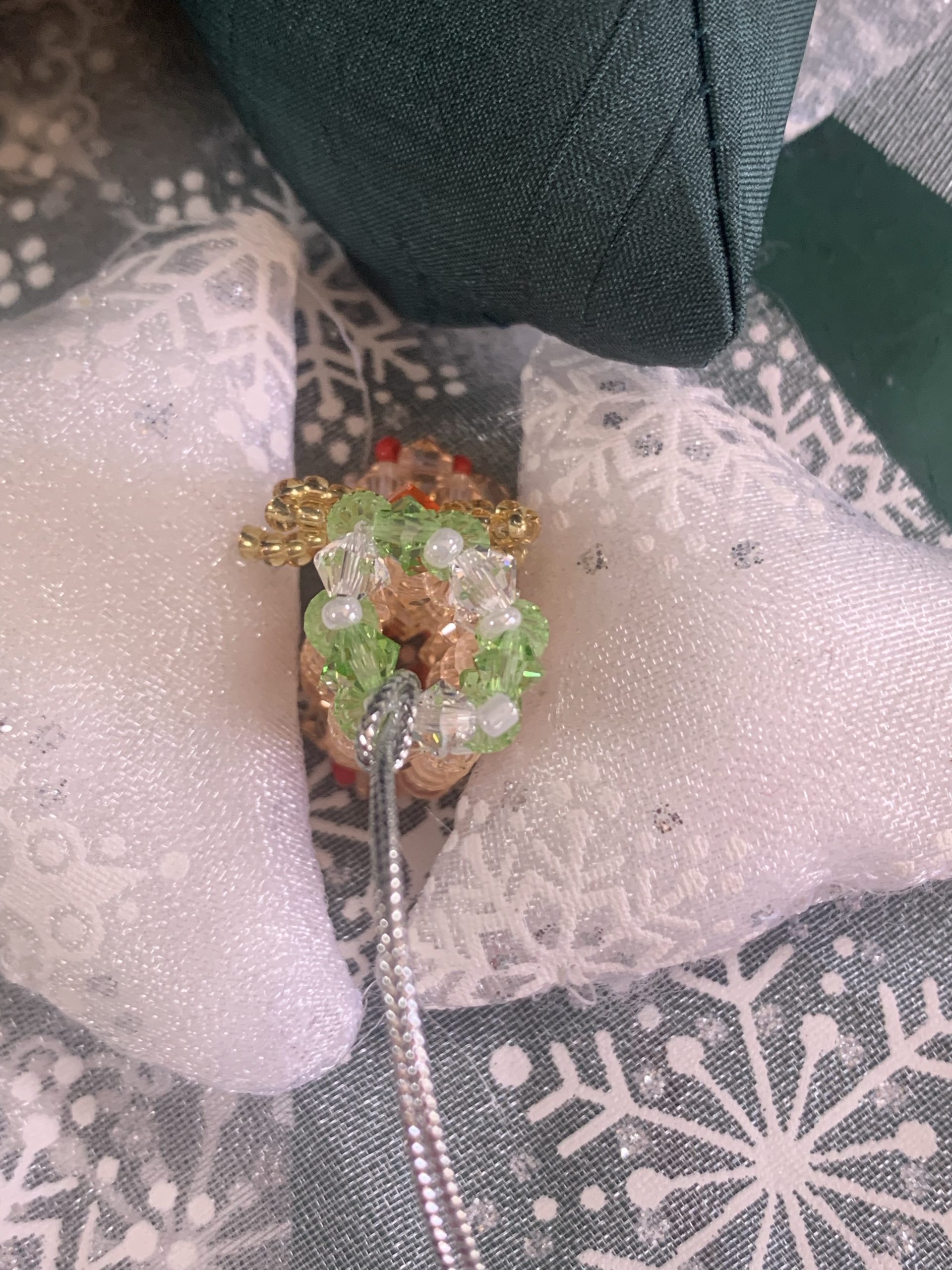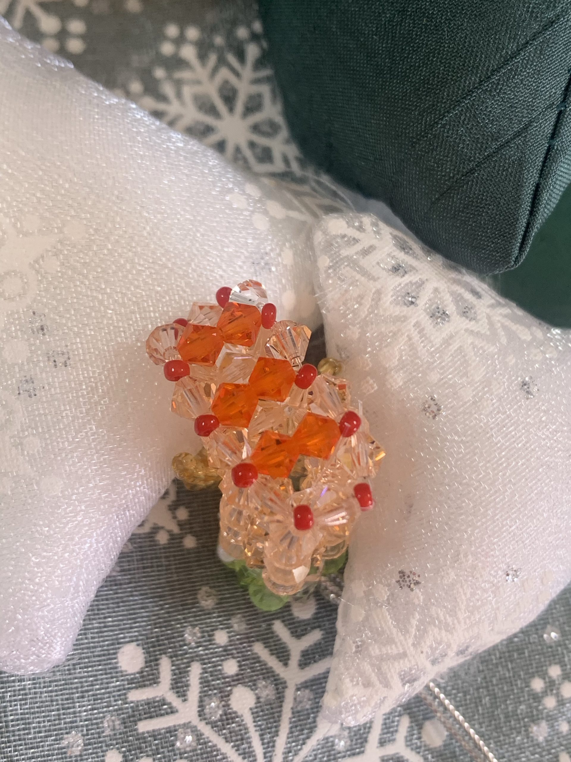 クリスマス ⭐︎ ブーツ 小オレンジ 2021年11月30日 最終更新日時 : 2021年11月30日 奥村三重子4mmのスワロフスキー使用横 約2.5cm 高さ 約3cmうしろ上から ブーツの履き口 1周約4cm底 長さ 約2.5cm 幅 約1cmストラップはフック付きです。価格 ¥1,300商品番号 Z21