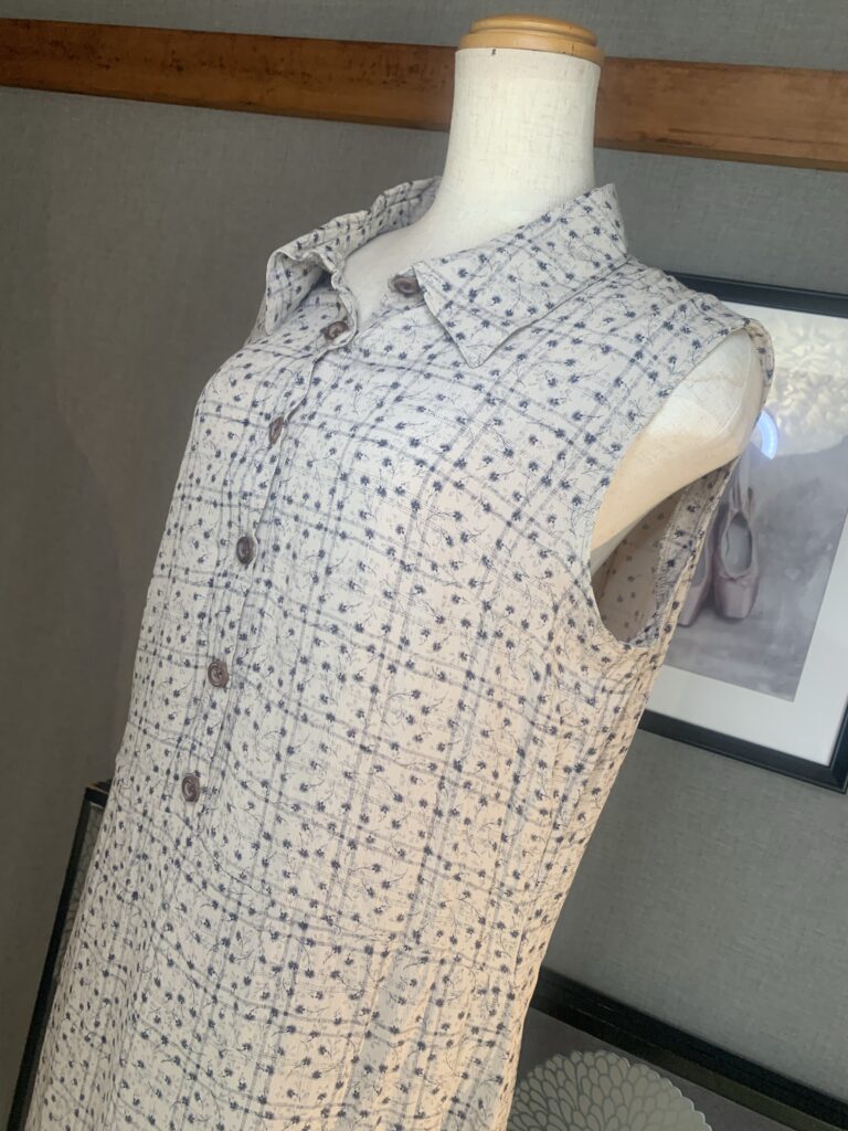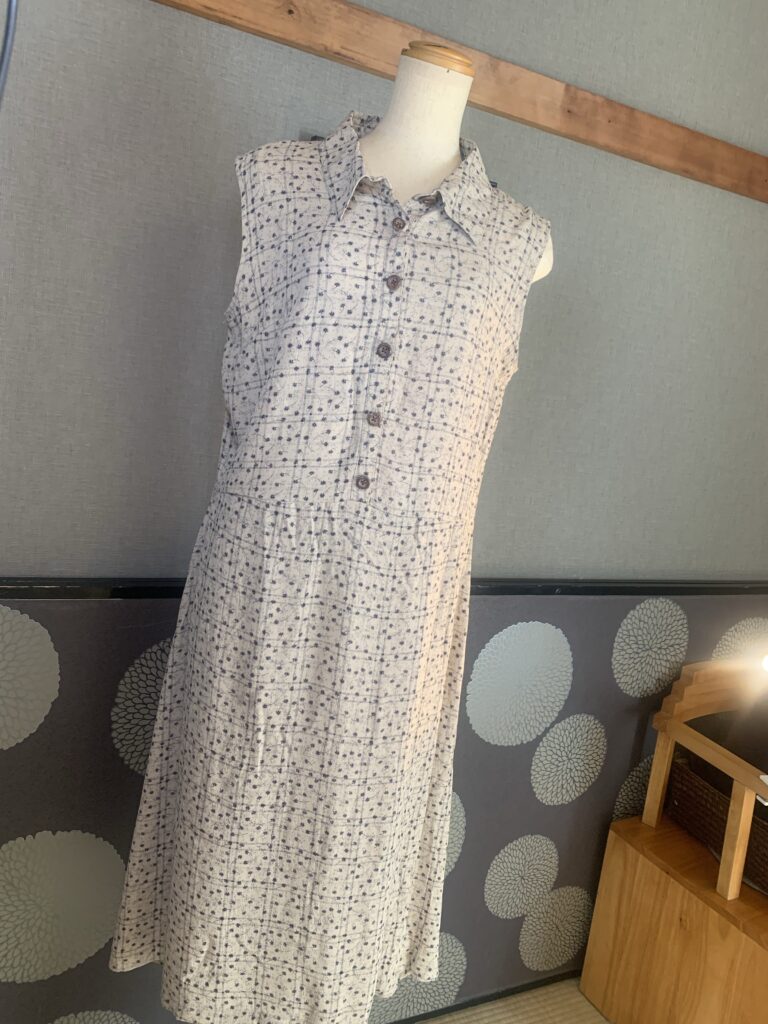 猫ノ手、手づくり、布帛、ワンピース、木、ボタン