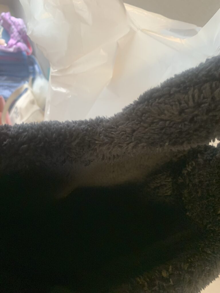コートの余り生地で作りました。触るだけで暖かいです。なので、敢えて裏地は付けませんでした。