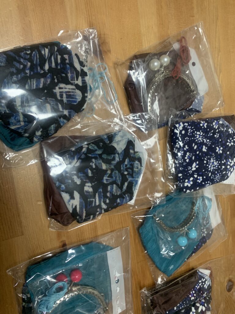アイロンで整えて、がま口に押し込み、手縫いします。裏に縫い目が出ないようにします。