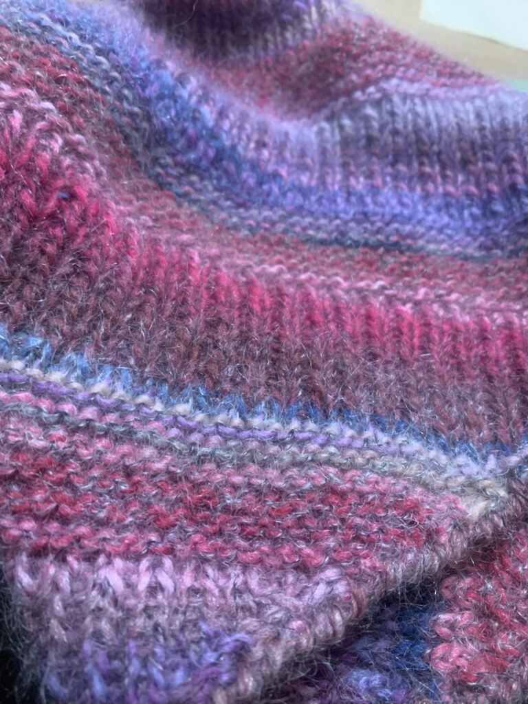 ねじりゴム編みをストライプに編みました。