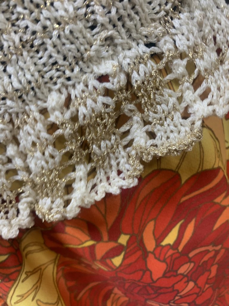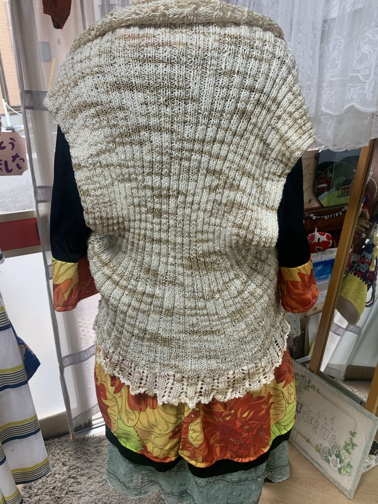 表編み、裏編みの至ってシンプルなゴム編みです。目数を増減することで、裾が広がり、更に縁に透かしの模様編みをすることで、さらに広がり、綺麗なシルエットが生まれます。羽織ることでちょっとだけ、高級感が出る…かもしれません。