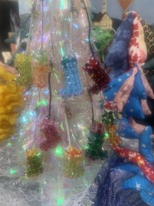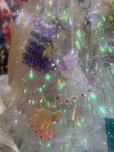 緑系統のビーズ使用。ストラップはフック付き 価格 1個 ¥1,300 商品番号 Z14(左)青×白 商品番号 Z15(真ん中) 水色 商品番号 Z16(右)青×ピンク