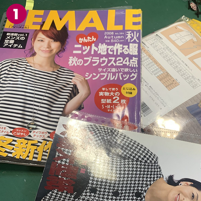 洋裁の本やパターン等から選んで作るものの形を決めます